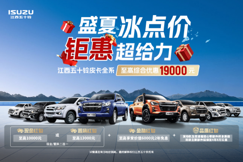 宝子们,想象一下:19000元能做什么?可能是一次远途旅行的预算,或是添置几件大家电的开销,亦或用作孩子的教育基金…江西五十铃盛夏放“价”!D-MAX、铃拓、瑞迈三款明星皮卡联手钜惠,现金红包、置换红包、金融贴息、品质礼,多重豪礼叠加至高优惠19000元!省下