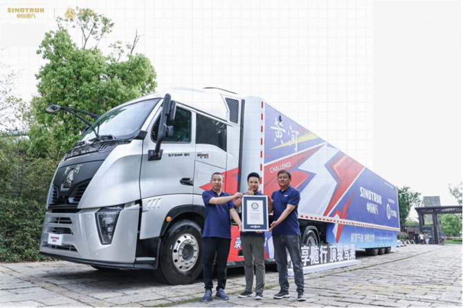 2022年,全新一代黄河重卡以非凡气魄冲击新巅峰,代表中国重卡的最高水准向吉尼斯世界纪录发起挑战。峰会现场,吉尼斯世界纪录认证官将吉尼斯世界纪录认证证书正式颁发予中国重汽,这证实了民族重卡黄河X7在车货总重49吨情况下,一箱油(945.29L)以4871.18km最远行驶距离,创造了“半挂式卡车单次加油行驶最远距离”吉尼斯世界纪录,用车轮印证了自身的极智节油性能和高效运输优势。黄河重卡以母亲河之名,推动中国物流行业迈入高质量发展新阶段。