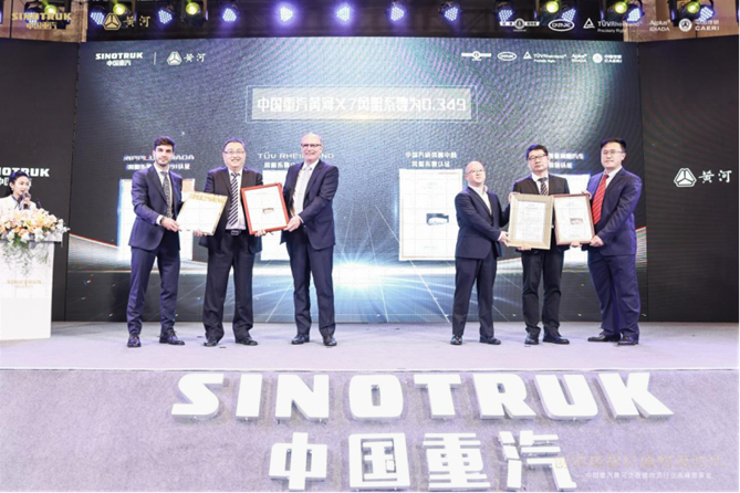 黄河重卡的风阻系数在行业内处于什么水平?峰会现场,中国汽研、中汽中心、TÜV 莱茵、伊狄达国内外四大权威机构分别为中国重汽黄河X7低至0.349Cd的风阻系数颁发了认证证书或声明,黄河X7作为超低风阻系数的全球量产重卡,再领民族重卡新高度!
