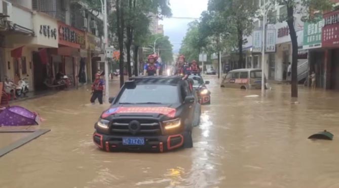 台风登陆伴随特大暴雨,容易引发内涝积水、山体滑坡等灾害,城市道路积水过深,路况复杂。长城皮卡车凭借强大通过性、脱困能力、装载性和涉水能力等优势,能更好的开展抗洪救援工作。当暴雨袭来时,长城炮车主第一时间迎难而上。面对浑浊的内涝、湍流,长城炮车主不惧危险,帮助转移受灾群众、护送物资、清除路障,让受灾民众看到希望,获得救援。