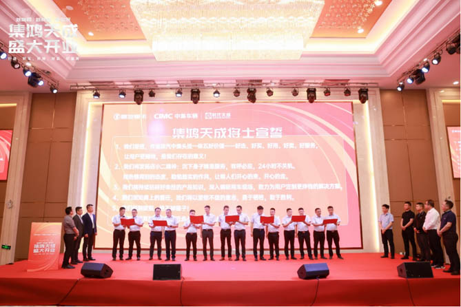 庆典当天,锣鼓喧天,醒狮献瑞。礼炮齐鸣,花篮簇拥。中集车辆集团助理总裁兼中集灯塔半挂车业务集团CEO舒磊博士,陕西重型汽车有限公司销售总监兼销售公司总经理赵承军,山东时代天成投资有限公司董事、总经理李继营与众多合作伙伴受邀出席,共同祝贺集鸿天成开业大吉!共同见证中集·陕汽“一个车企”行业深度发展新里程的璀璨启航。