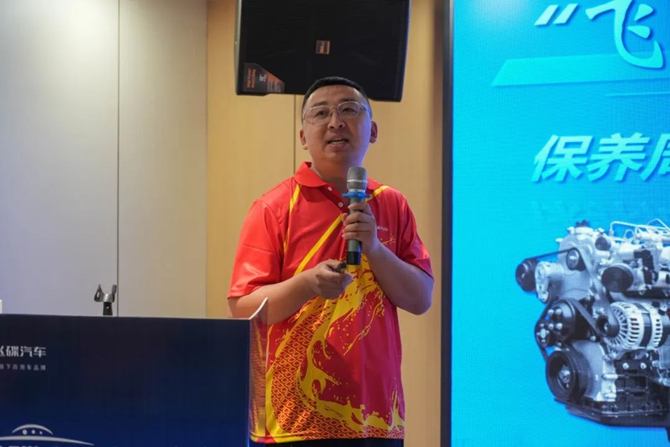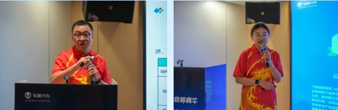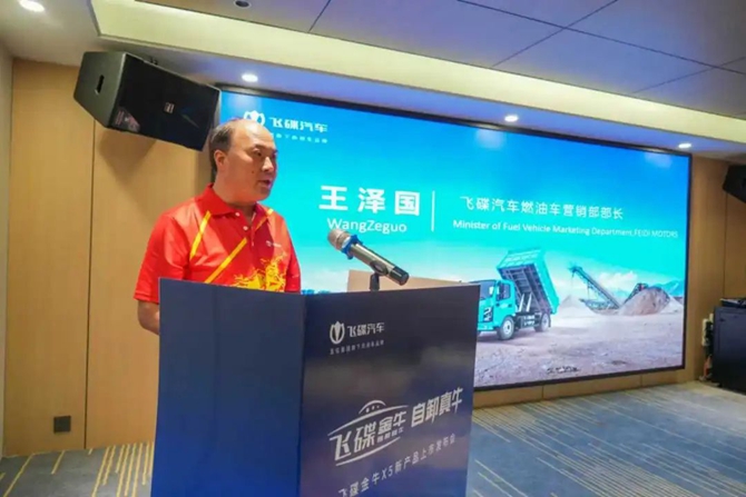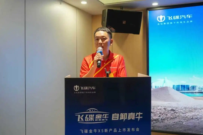 发布会上,海南嘉铭汽车贸易有限公司总经理张嘉伟致欢迎辞,表达了对飞碟金牛产品的坚定信心与市场期待。