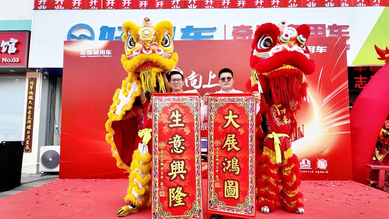 剪彩礼成,传统的舞狮点睛与采青环节随即上演。好用车江文波先生与志星李立江先生共同为祥狮点睛,一点左眼“慧眼识珠,洞察市场”,二点右眼“客源广进,生意兴隆”,三点额头“鸿运当头,万事如意”。被赋予灵气的祥狮随后进行了精彩的采青表演,将悬挂于高处的“青”采下,分别把“喜气”、“财气”与“鸿运”传递给江文波、李立江与曹智多。祥狮还献上吉祥对联,为旗舰店送上最美好的祝福,将现场的传统喜庆氛围渲染得淋漓尽致。