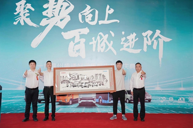 随后的交车仪式,宣告温州盛通租售业务正式启动。机器人手托钥匙礼盘稳健上台,为司机家人送上交车钥匙并进行走红毯交车仪式!