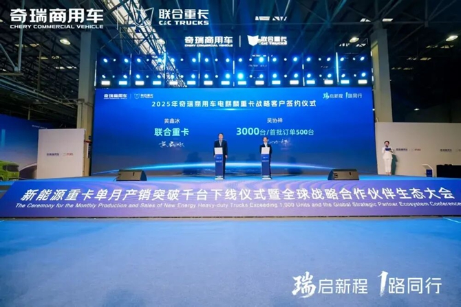 结语:立足千台新起点,奇瑞商用车联合重卡正以更加开放的姿态、更加坚定的步伐,与全球伙伴携手共进。未来,奇瑞商用车联合重卡将继续深化技术协同、强化质量根基、优化供应链体系,与合作伙伴共同开拓新能源重卡新蓝海,携手迈向高质量、可持续发展的新篇章。