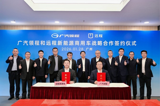 1月28日,广汽领程新能源商用车有限公司(下称“广汽领程”)与浙江远程新能源商用车集团有限公司(下称“远程新能源商用车”),在广州签署战略合作协议。广州公交集团党委书记/董事长覃海宁,远程新能源商用车集团CEO范现军、副总裁丁鼎,广汽领程总经理张志勇、首席营销官杨林等出席签约仪式。双方将在新能源商用车领域开展全方位、多层次的战略合作,共同推动我国商用车产业向绿色、智能方向加速转型。