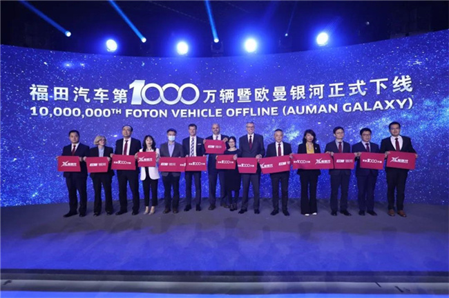 北汽集团党委副书记、总经理张夕勇对福田汽车用1000万辆新品下线迎接25周年庆典、献礼中共百年华诞表示热烈祝贺和由衷肯定。他在讲话中指出:福田汽车仅用25年时间,不仅成为了北汽集团高质量发展的中流砥柱,也是中国最年轻、全球最具潜力的商用车企业之一。今天,福田汽车的整车销量正式突破 1000 万辆,也是北汽集团第一家迈过千万辆门槛的自主整车企业。1000 万辆,是里程碑,亦是新起点。福田汽车之前景,正如今天下线的欧曼全新产品——欧曼银河,彰显着创新与合作的力量,希望福田汽车也继续秉承自主创新、开放合作的发展理念,不断蓄势、奋力前行,迈向一个又一个千万辆里程碑。北汽集团也将一如既往地全力支持福田汽车发展。