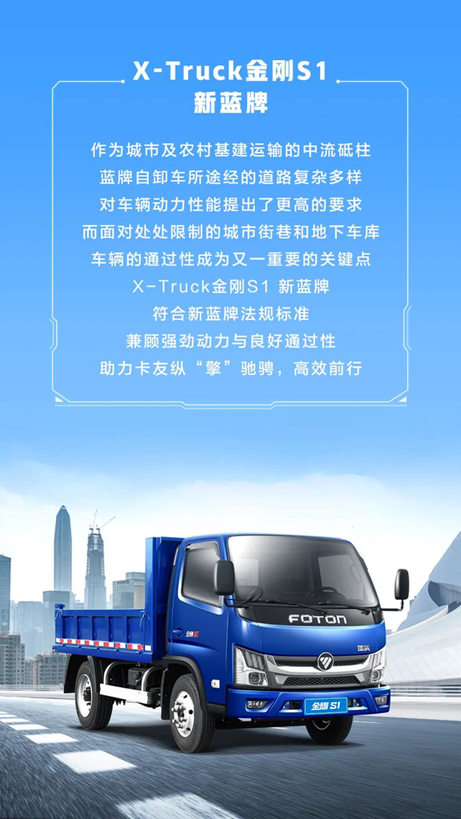 作为一款满足农资农副、工业散装、园林绿化、装修建材、建筑垃圾等多功能运输的轻量化国六自卸车,X-Truck金刚S1 新蓝牌动力强劲,能够适应多种路况场景。