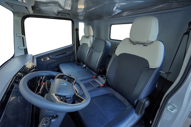 在被动防护层面,采用高性能气刹制动系统,实现24.8米最短制动距离,搭配ABS防抱死系统与EBD制动力分配系统,精准控制车速,避免制动失灵风险;同时,高强度车身+中置电池设计,配备多重防护结构与智能热管理系统,抗颠簸碰撞、稳抗高温,避免电池故障影响冷藏机组供电,为驾乘人员与高价值冷藏货物构建起双重坚固的安全屏障。