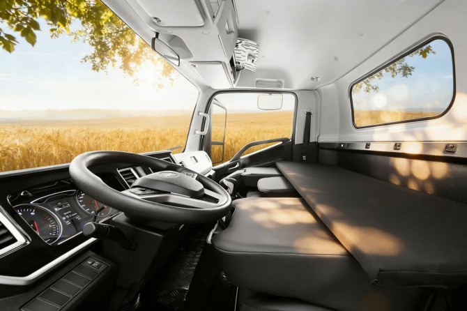 农机运输长时间跟车作业,驾驶室舒适性与功能性备受关注。德沃斯V8/德沃斯Q8拥有半环抱内饰、多功能方向盘、可翻气囊座椅、7寸液晶仪表、MP5+倒车影像、倒车雷达、电调后视镜等配置,骏铃A9/骏铃V7可选日间行车灯、车联网等配置,提升了复杂路况以及夜间转移的安全性与便利性。