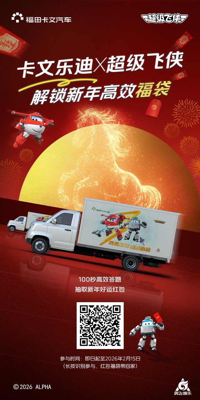 即日起至2026年2月15日,欢迎扫码上车,参与“福田卡文乐迪:解锁新年高效福袋”活动!答题抢红包,开年迎好运,让福田卡文乐迪和大家一起把新年的第一公里,跑成红红火火、充满底气的一公里!