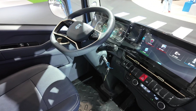 车身结构上,潍柴蓝擎 X7采用笼式框架设计,顶盖新增横梁强化承载能力,抗冲击性显著提升;超大风挡玻璃将地面盲区缩短10%,A柱障碍角缩小15%,视野更开阔,驾驶更安全。