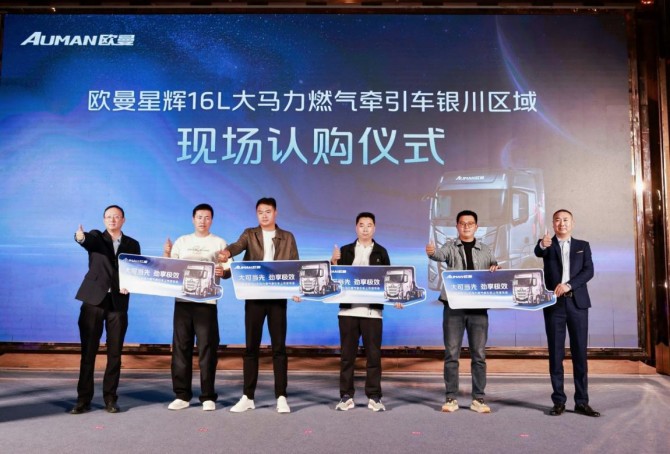 10月18日:以“大可当先 劲享极效”为主题的欧曼星辉16L大马力燃气牵引车上市发布会在银川隆重举行,并发布订车政策,将首批欧曼星辉16L大马力燃气牵引车交付订车客户,并与西北物流企业、经销商代表签约达成57台订单合作。