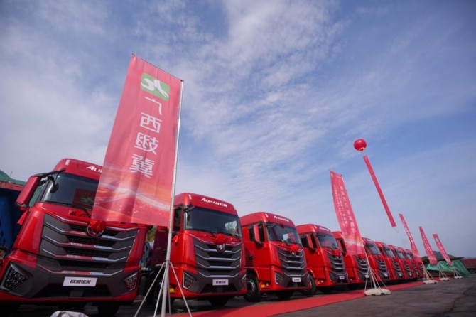 5月11日:“欧曼星辉&广西翅冀 欧曼星翼大马力燃气牵引车100台交车仪式”在广西梧州举行。此次欧曼星翼 14L-520 马力燃气牵引车的交付,充分彰显了欧曼动力技术的“硬核”实力,以及“以用户为中心”的服务践行,不仅为资源运输领域带来专属化的产品和服务保障,更树立了大马力燃气重卡的品质标杆。