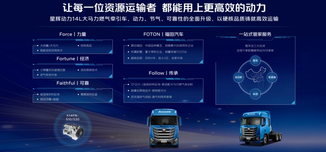 欧曼星辉动力14L燃气车上市之际,福田欧曼推出了用户专属订车权益,切实降低用户购车与用车成本。同时,福田欧曼为购车用户提供一站式管家服务,让资源运输用户购车放心、用车安心、运营省心。